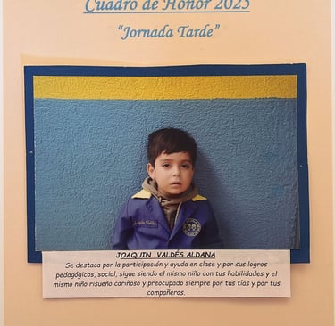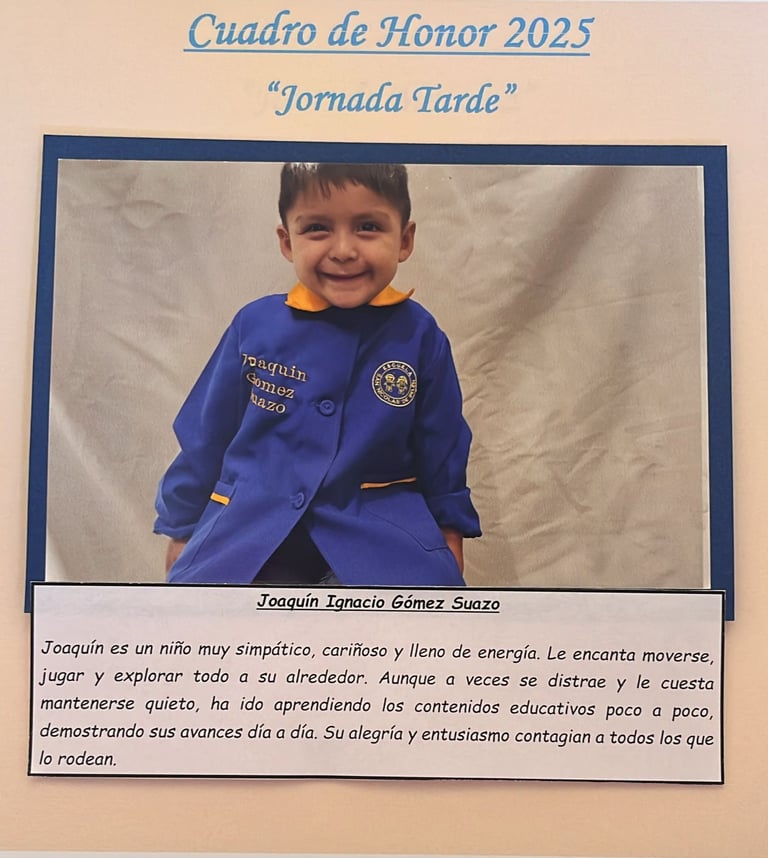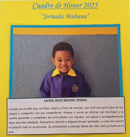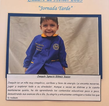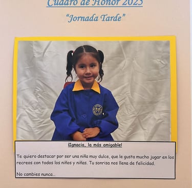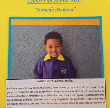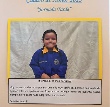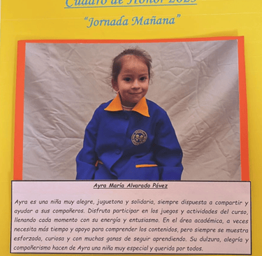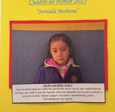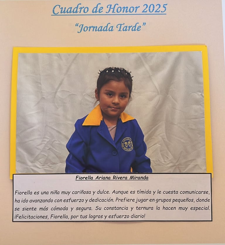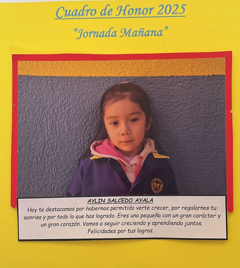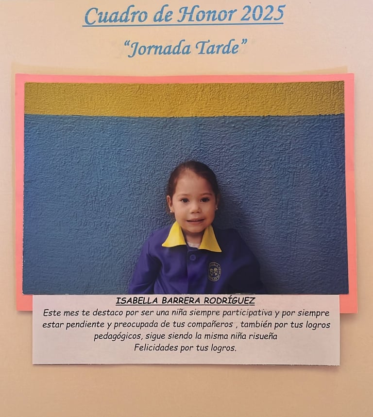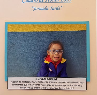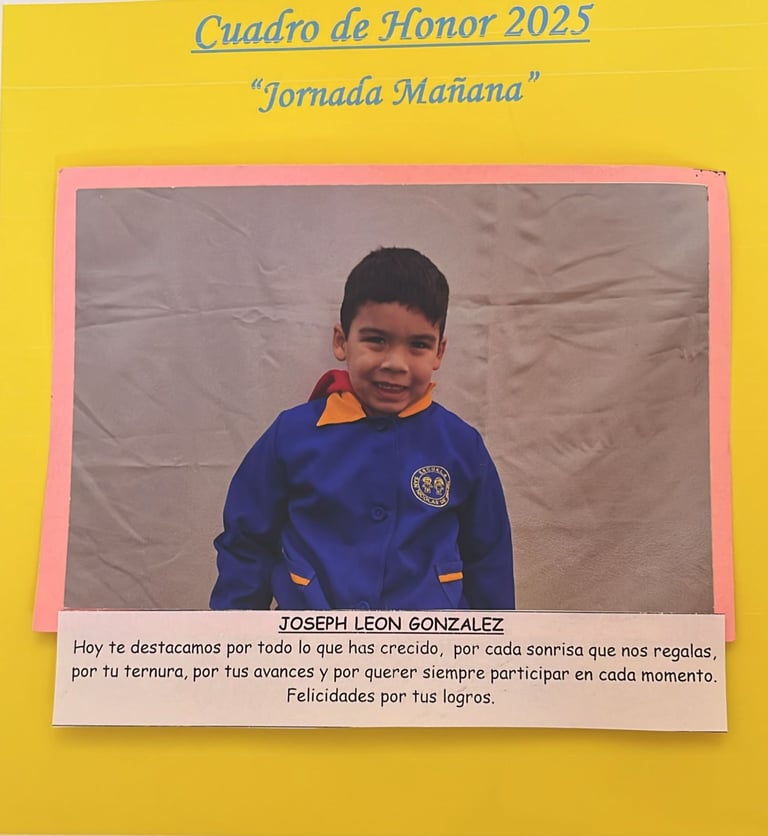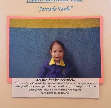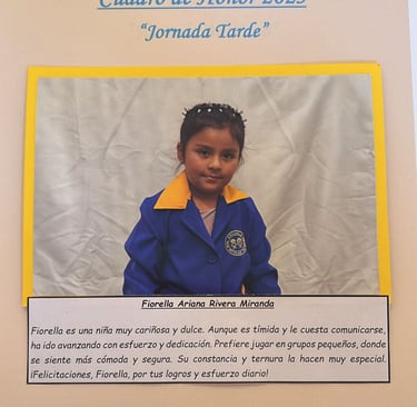 En este Cuadro de Honor destacamos a nuestros niños y niñas más sobresalientes, no solo por sus logros académicos, sino también por su entusiasmo, compañerismo, responsabilidad y amor por aprender.