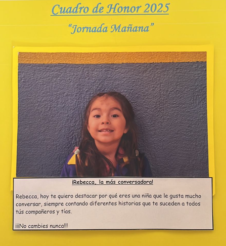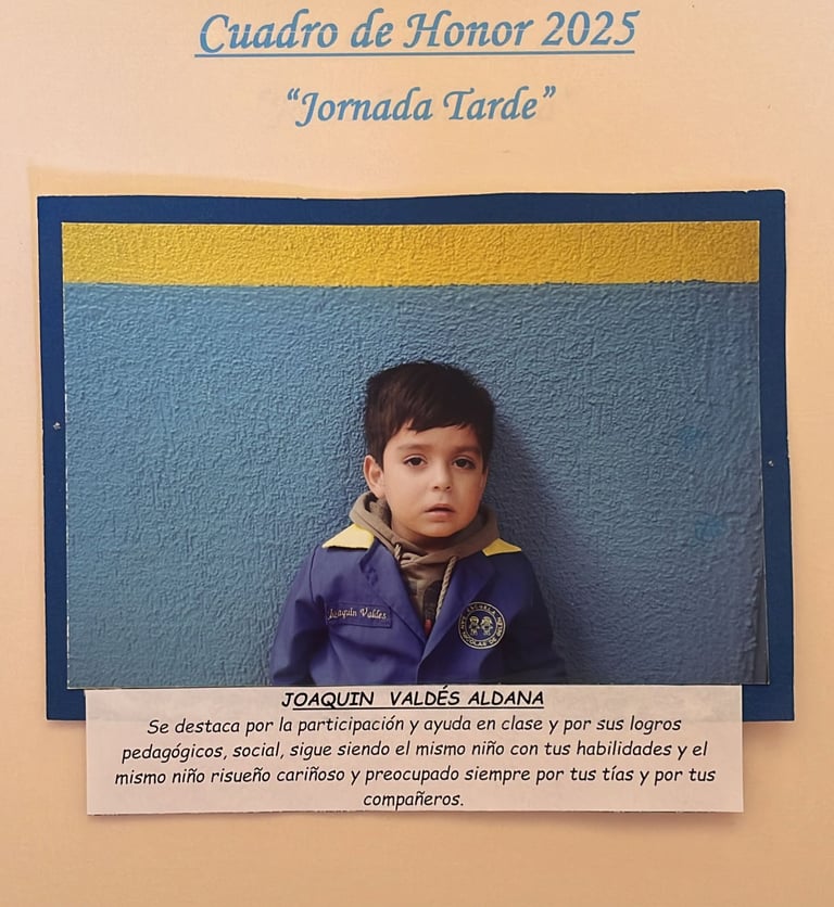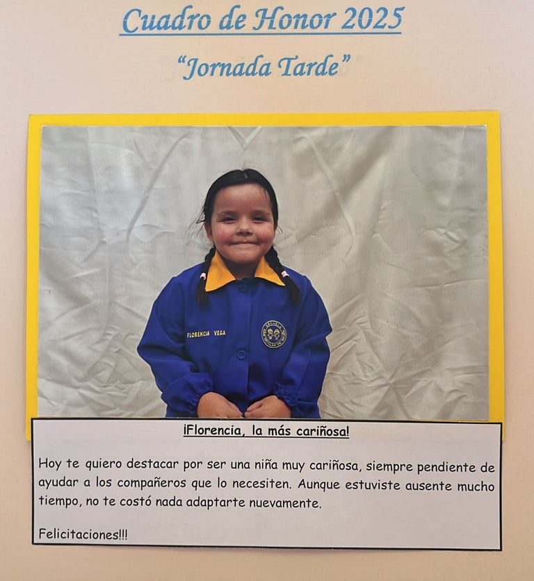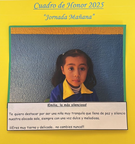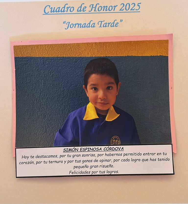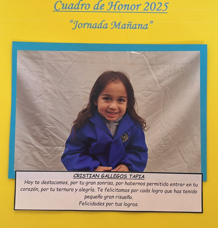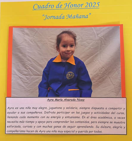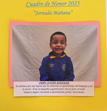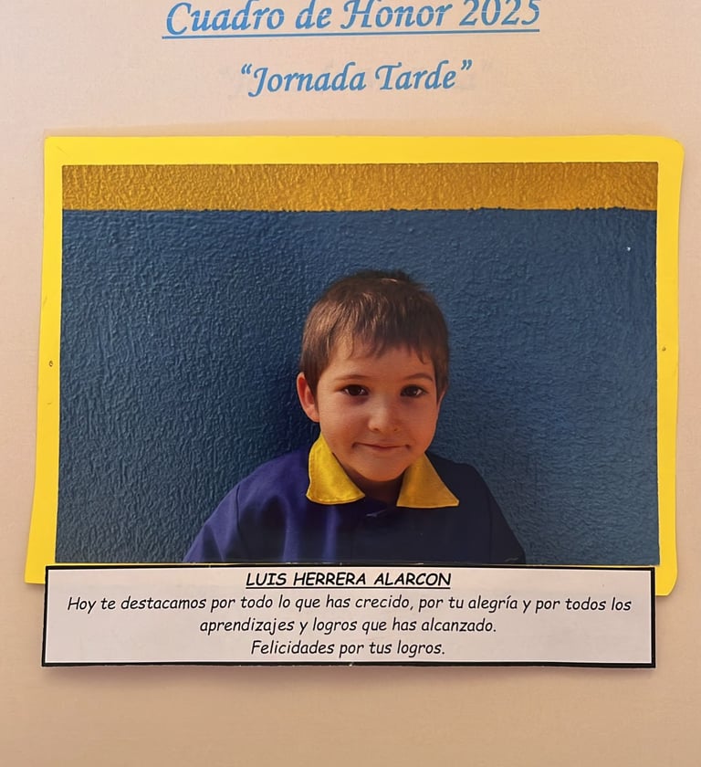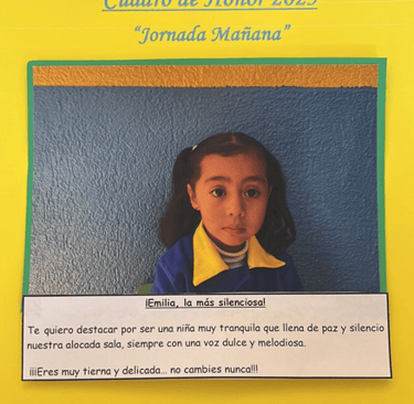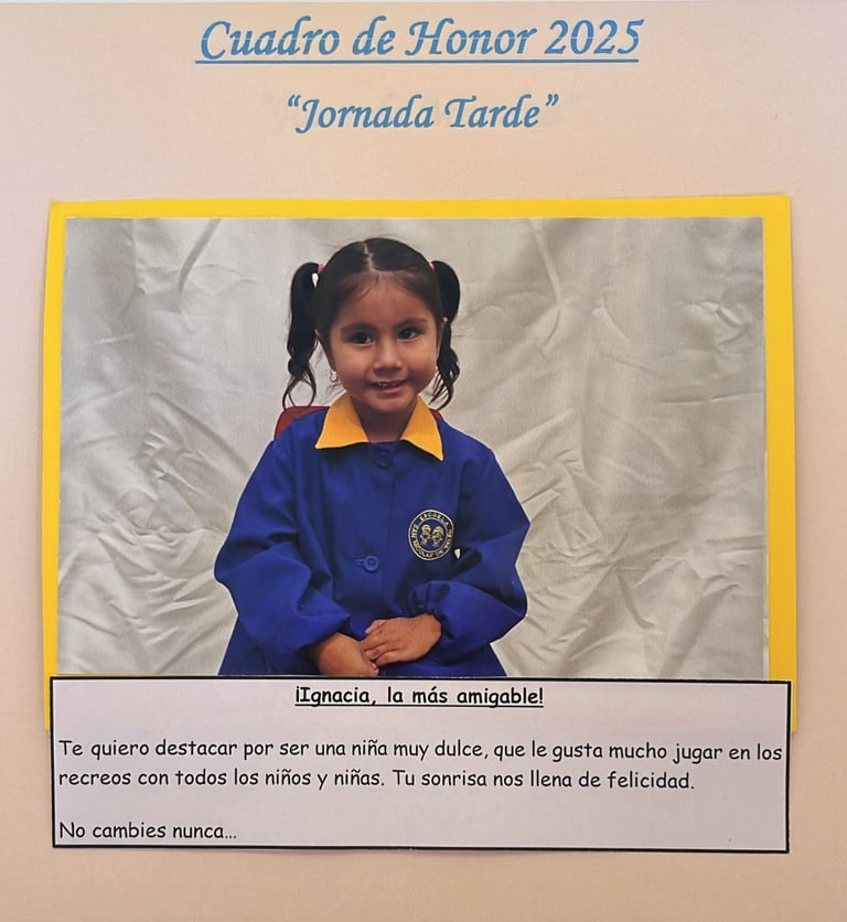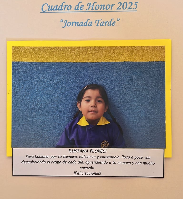En este Cuadro de Honor destacamos a nuestros niños y niñas más sobresalientes, no solo por sus logros académicos, sino también por su entusiasmo, compañerismo, responsabilidad y amor por aprender.